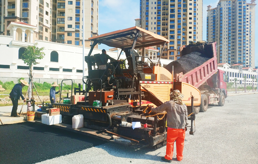 8月15日上午,省路桥公司东方片区指挥部代建的丰收路二标开始摊铺沥青下面层。东方市丰收路二标市政工程全长807米,目前已完成排水、电力电信、人行道、照明等工程,现在开始摊铺沥青路面,施工进度已完成工程总量的87%。丰收路市政道路改造工程项目的贯通,将进一步完善区域路网结构,缓解交通压力,疏导该区域的交通拥堵,可大大方便市民的出行。