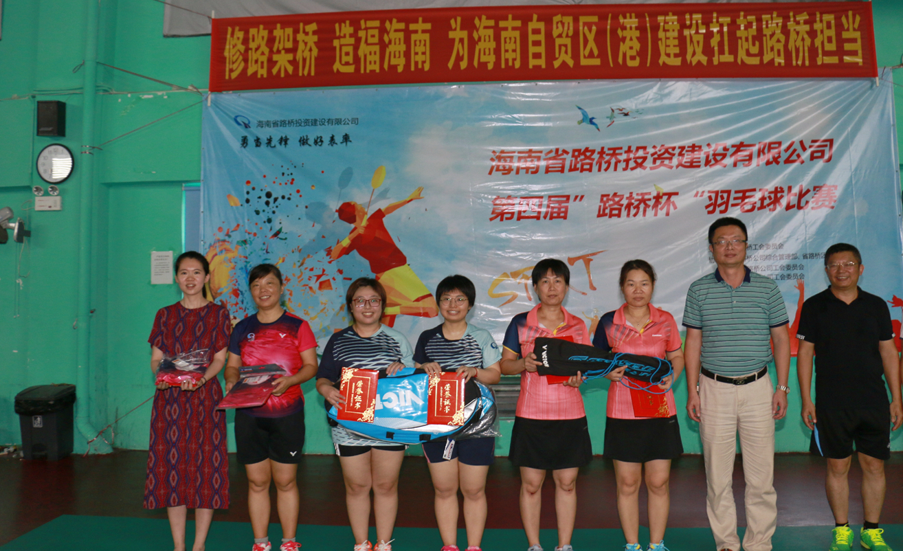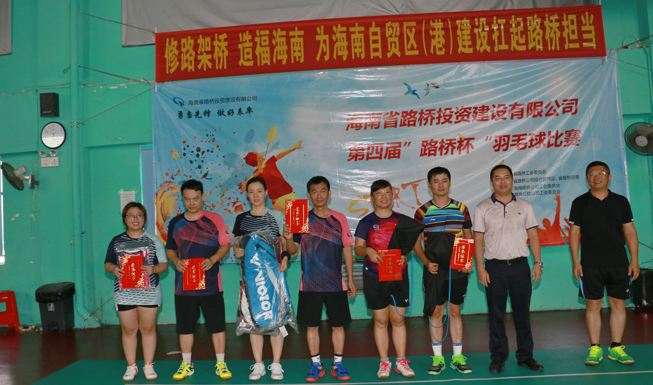 为丰富公司广大职工的业余生活,凝聚“家”的吸引力,迎接“五一”国际劳动节,省路桥公司于4月27-28日在海口举行公司系统内“勇当先锋 做好表率”第四届“路桥杯”羽毛球比赛。省机械能源石化医药工会常务副主席吴清新出席开幕式并致词,省路桥公司党委书记、董事长吴德海致开幕词并宣布比赛开始。省路桥公司工会主席郭春武主持开幕式,公司纪委书记林世壮、副总经理陈志翔等出席开幕式。本届比赛共有系统内10家下属公司、指挥部129名运动员参加,创下历届参赛人数之最。