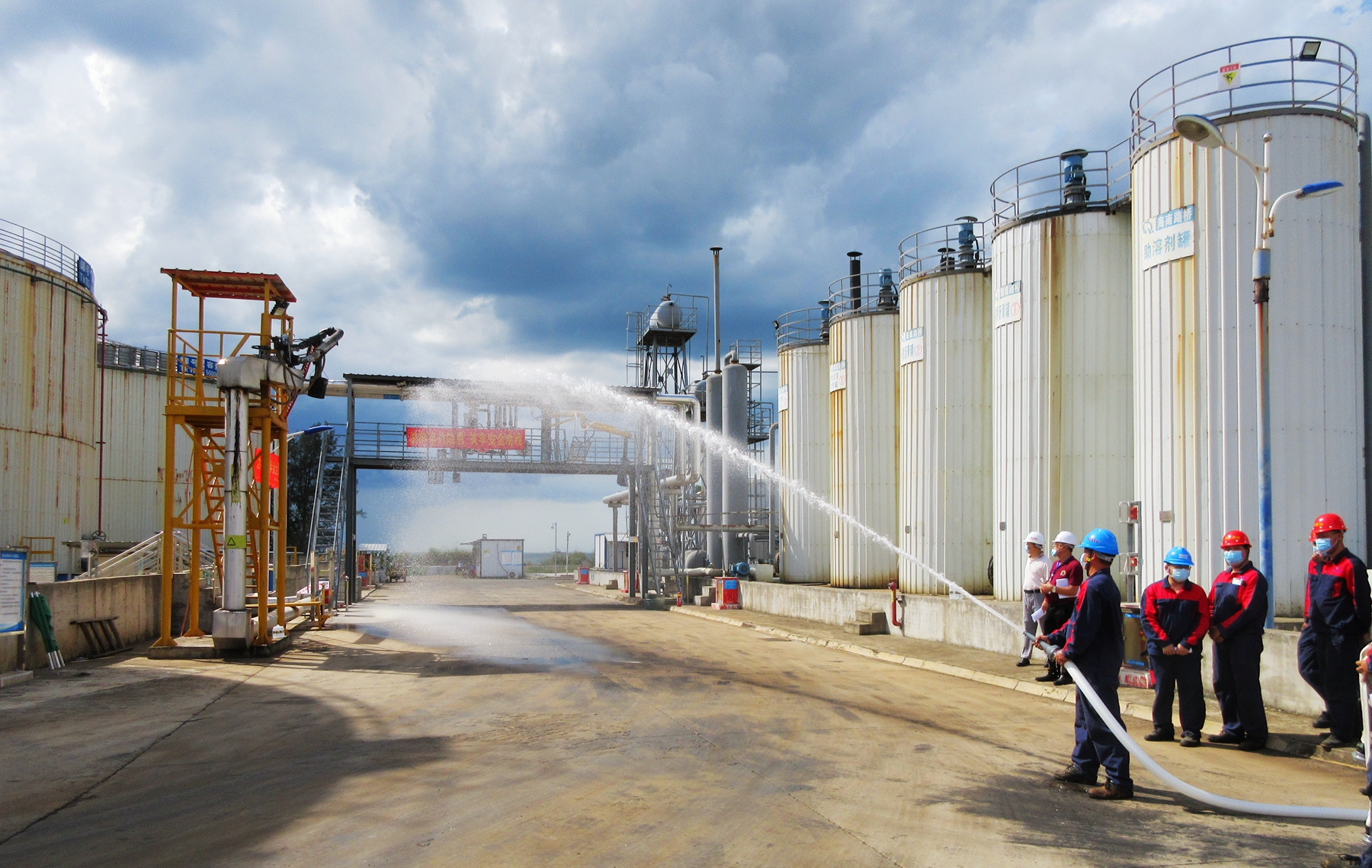 为了加强安全管理,提高员工处理突发事件的应变能力,路桥沥青公司于6月19日下午在厂区举行2020年度安全月消防演练,进行了应急疏散,伤员救治,干粉灭火器扑灭油类火灾和消防水灭火等科目演练活动。